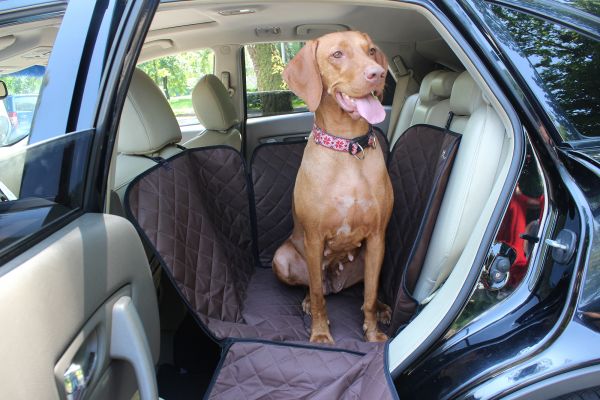 Автогамак для собак с защитой двери и порога автомобиля на половину заднего сидения.