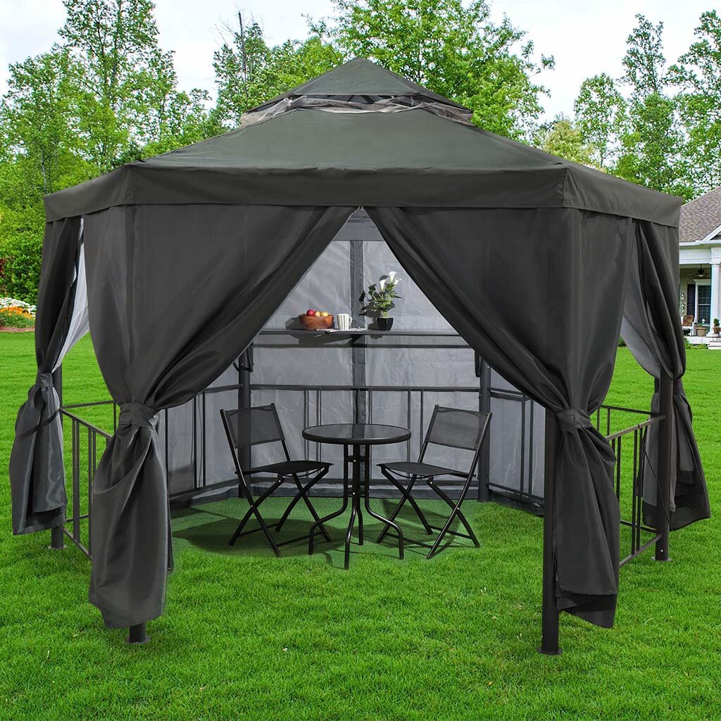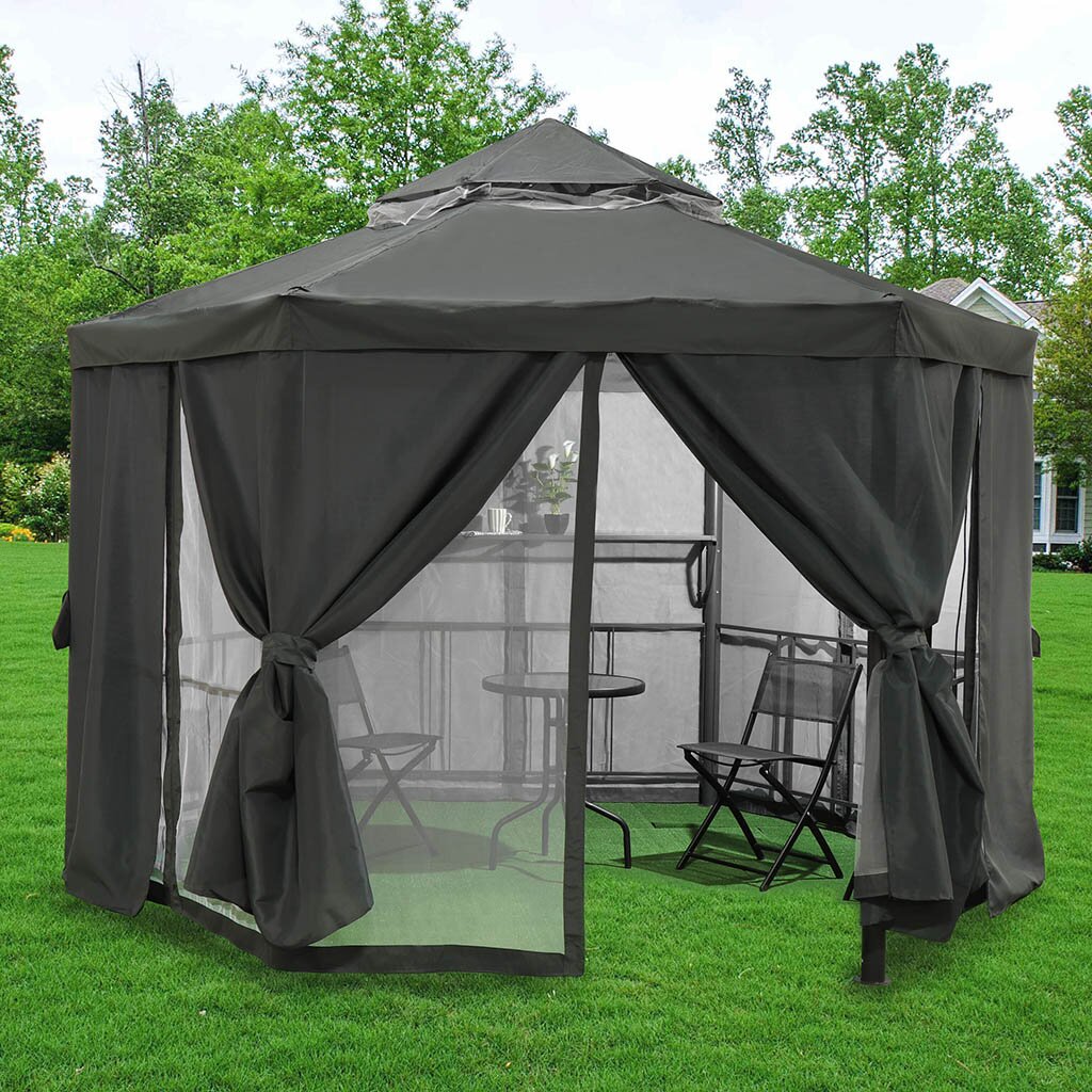 Тент-крыша с антимоскитной сеткой + плотные шторы для шестиугольного шатра Green Days 1.75х1.75х2.75 м