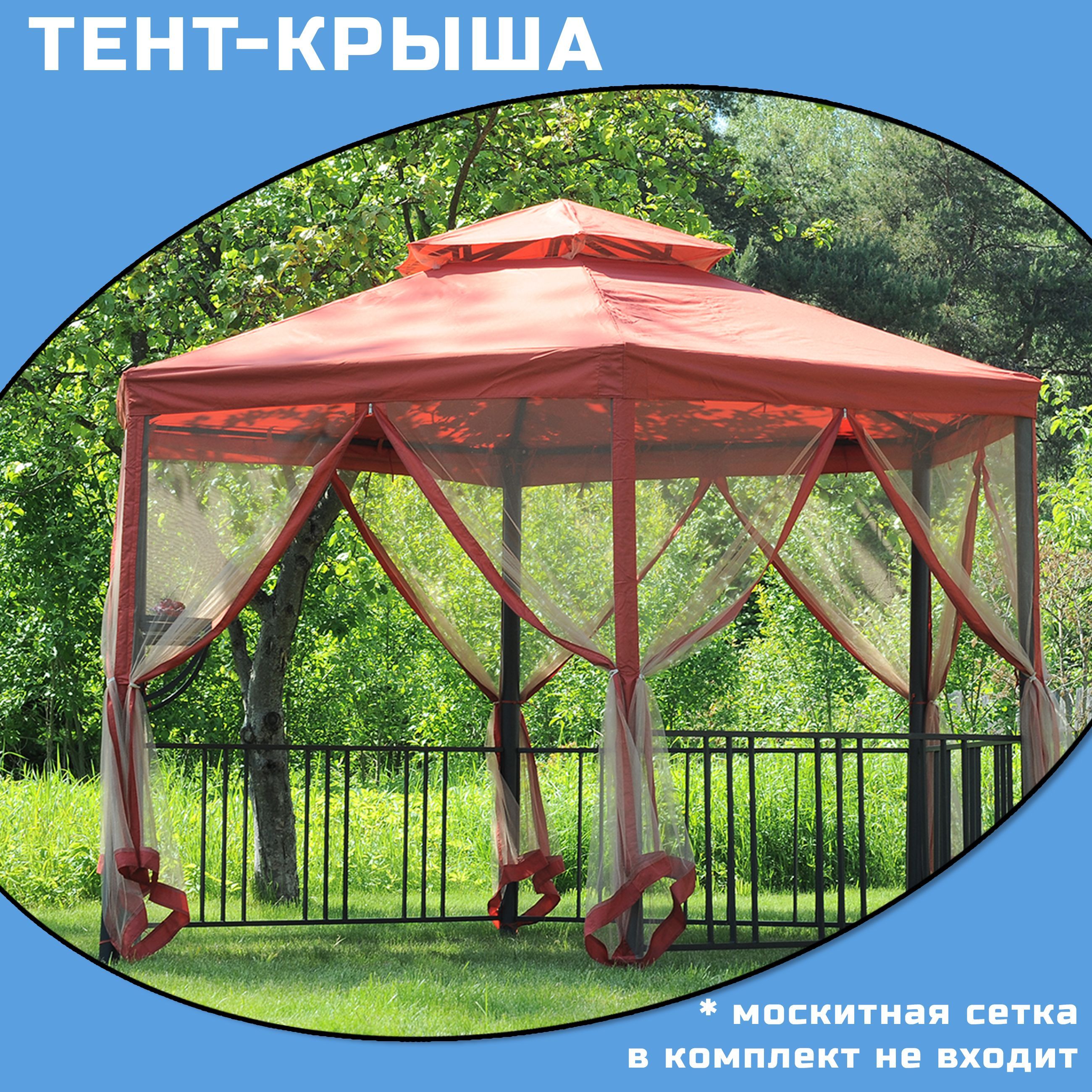 Тент на крышу шестигранной беседки, красный, 300D (с клапаном)