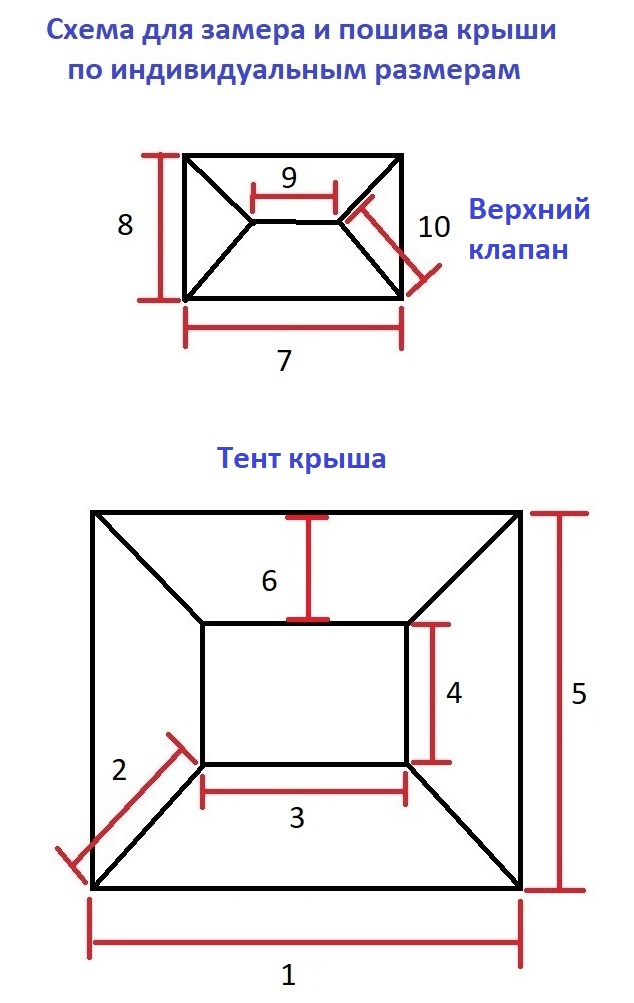 Размеры тента-крыши согласно схеме +\- 1-2см